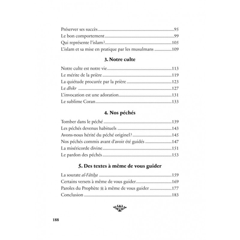 Celui qui trouve les réponses à ses questions dans la Révélation peut être certain de leur justesse et avancer dans la vie avec une foi pleine de certitude et le cœur serein. Il connaîtra donc le bonheur et la douceur de vivre ici-bas et la félicité éternelle dans l’au-delà. »