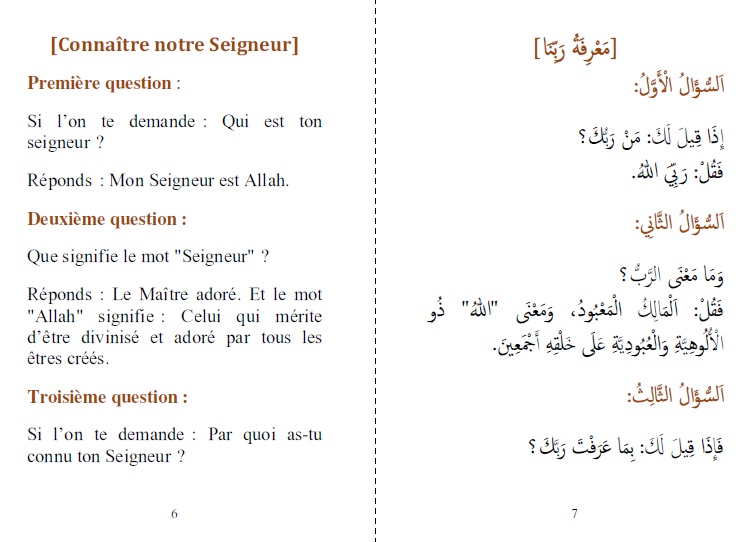Apprendre l’unicité aux enfants – Bilingue : voici une épître bénéfique à propos de ce que l’on doit enseigner à l’enfant bien avant de lui apprendre le Coran afin qu’il devienne une personne accomplie sur la base de l’Islam originel et un monothéiste convaincu et dévoué suivant la voie de la foi. J’ai organisé cette épître sous forme de questions et réponses.