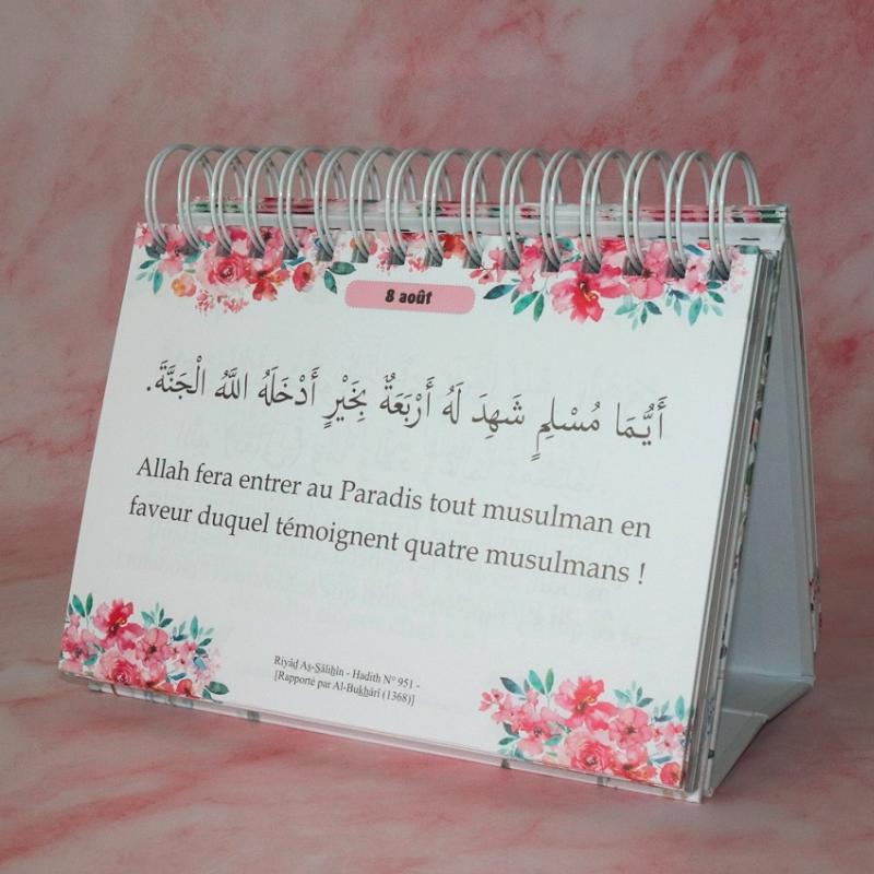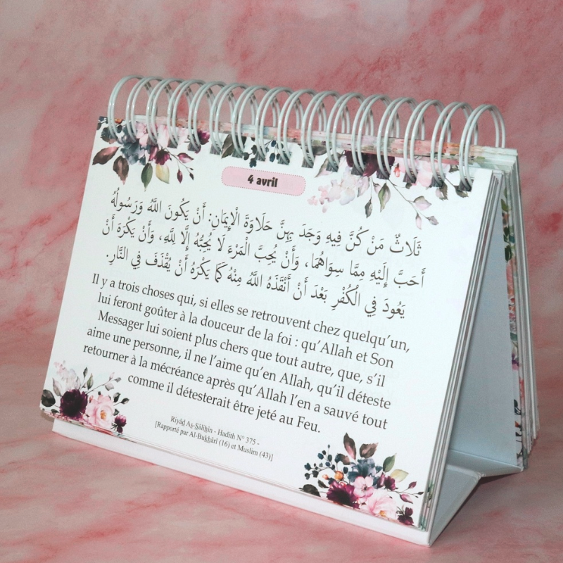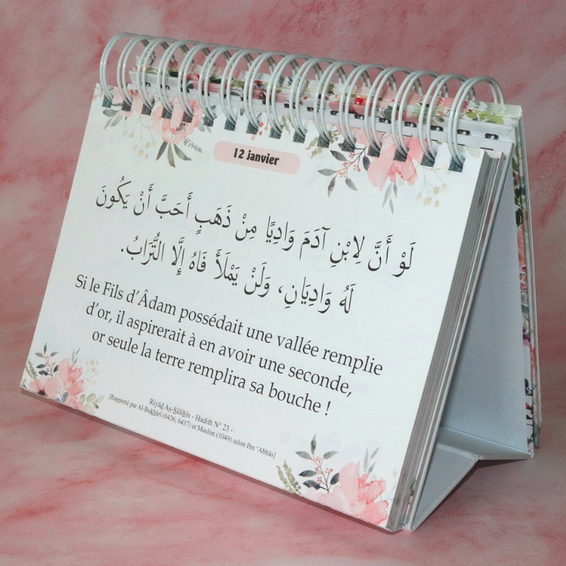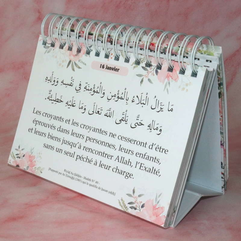 Points forts : Un vrai calendrier perpétuel que vous pourrez réutiliser chaque année (ne se périme pas). Chaque mois a son propre thème et décor graphique. Une véritable sélection de hadiths authentiques très intéressants à méditer et à apprendre par coeur.