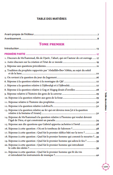 | Auteur : Abou Dja’far Mo’hammad Ibn-Djarîr Ibn-Yazid Tabarî |