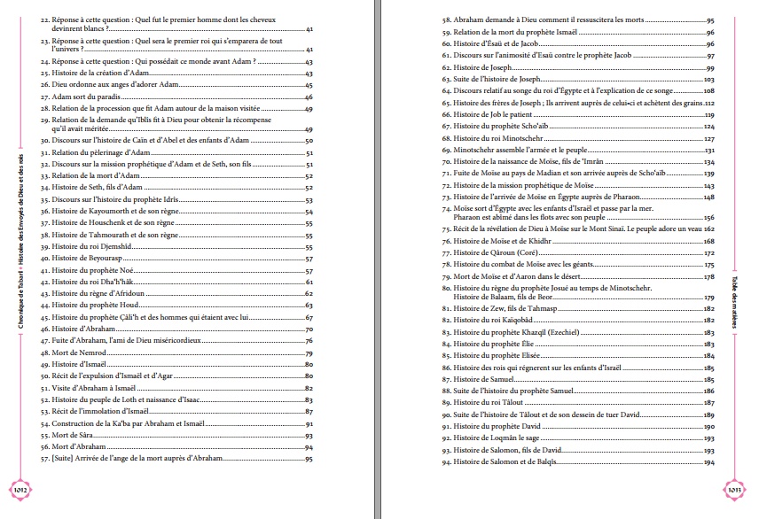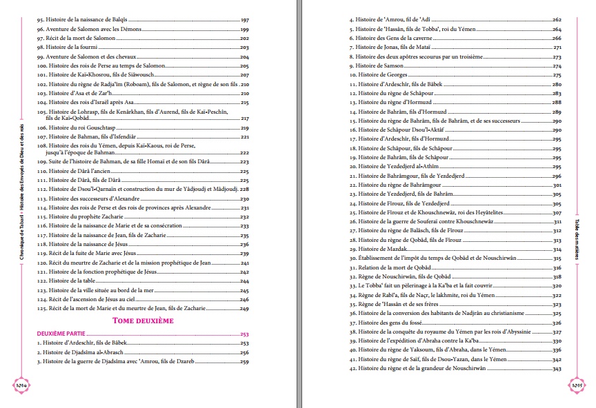 Cette traduction française de l’Abrégé de Tabarî produite par un orientaliste du XIXe siècle et réalisée par Hermann Zotenberg, reste, malgré son ancienneté (1874), un travail de grande valeur. Zotenberg a transmis au lecteur francophone un Tabarî accessible, correspondant aux règles de la rédaction historique du début du XXème siècle, aussi bien dans la chronologie que dans la narration des évènements. Ces règles ne sont pas exclusivement celles de l’école de la transmission du `Hadîth qui a donné naissance à l’historiographie musulmane.