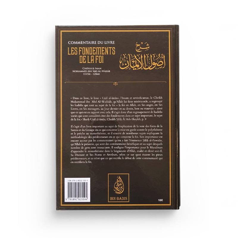 Commentaire Du Livre Les Fondements De La Foi – Cheikh Muhammad Ibn Abd Al-Wahhâb – Ibn Badis : « Dans ce livre, le livre « Uṣūl al-īmān», l’Imam et revivificateur, le Cheikh Muḥammad ibn `Abd Al-Wahhāb, qu’Allah lui fasse miséricorde, a regroupé les hadiths qui sont au sujet de la foi – la foi en Allah, en Ses anges, en Ses Livres, en Ses messagers, au Jour dernier et au destin, bon ou mauvais – ainsi que ce qui est en rapport avec cela. Il s’agit donc d’un regroupement de hadiths variés qui sont considérés être des fondements dans ce sujet important, le sujet de la foi.» Sharḥ Uṣūl al-īmān, Cheikh Ṣāliḥ Āl Ash-Shaykh, p. 9