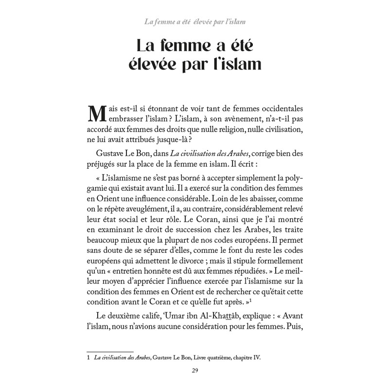 À contre-courant des représentations biaisées sur la femme en Islam, trop souvent véhiculées par certains médias ou par des discours partiaux, et loin aussi des compromis que certains pourraient être tentés de faire au détriment des principes islamiques, ce livre invite à un retour aux sources : le Coran et la Sunna.