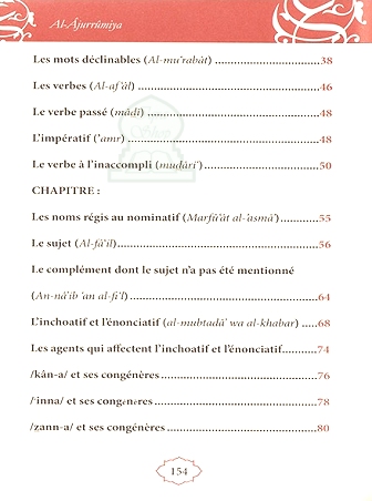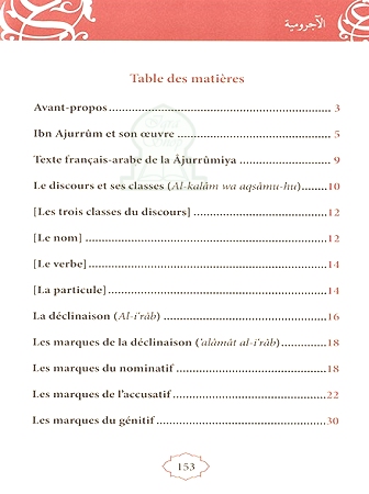 Grammaire élémentaire de l’arabe – Al Ajurrûmiya : La Ajurrûmiya est un livre de grammaire arabe qui traite essentiellement de la syntaxe, autrement dit, des rapports qui existent entre les différentes fonctions syntaxiques. Bien que cet opuscule soit destiné aux élèves de cours élémentaires, il nécessite néanmoins quelques explications. C’est pourquoi, après l’avoir traduit vers le français, nous l’avons enrichi de notes explicatives et d’exemples d’illustration afin d’en rendre l’approche plus aisée.