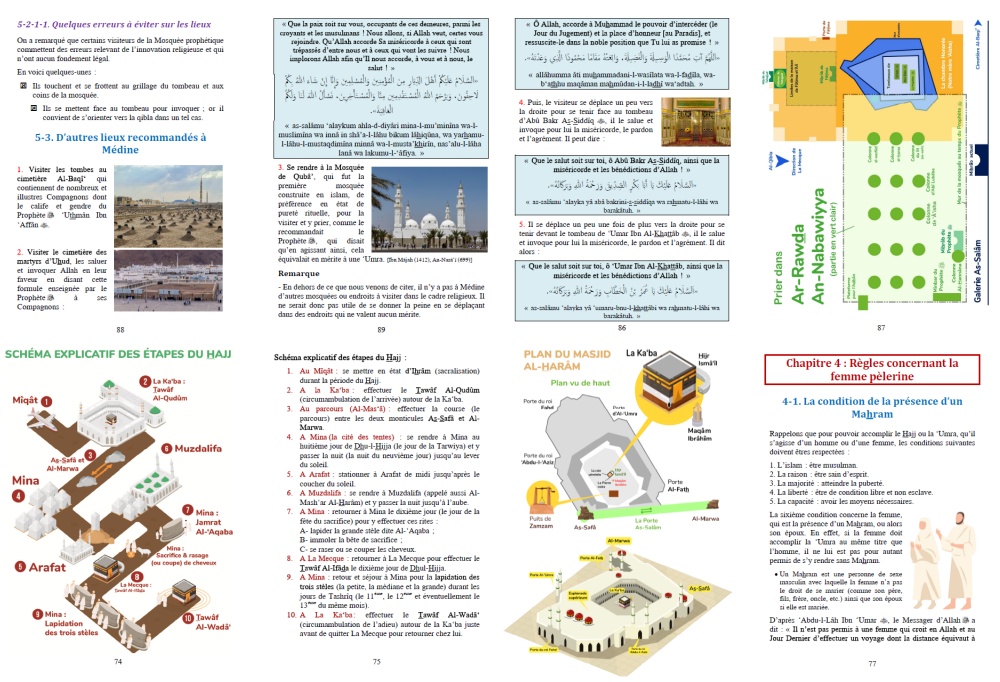- Un recueil d’invocations en arabe, français et phonétique pour accompagner le pèlerin à chaque étape.