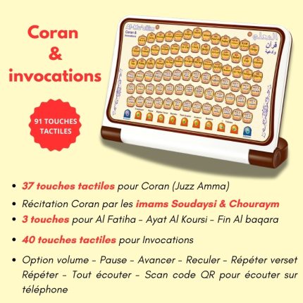 16.500 CFAAl-Muallim 5 – Sourates du Coran et invocations – Tablette Juzz Amma complet avec 80 touches tactiles :