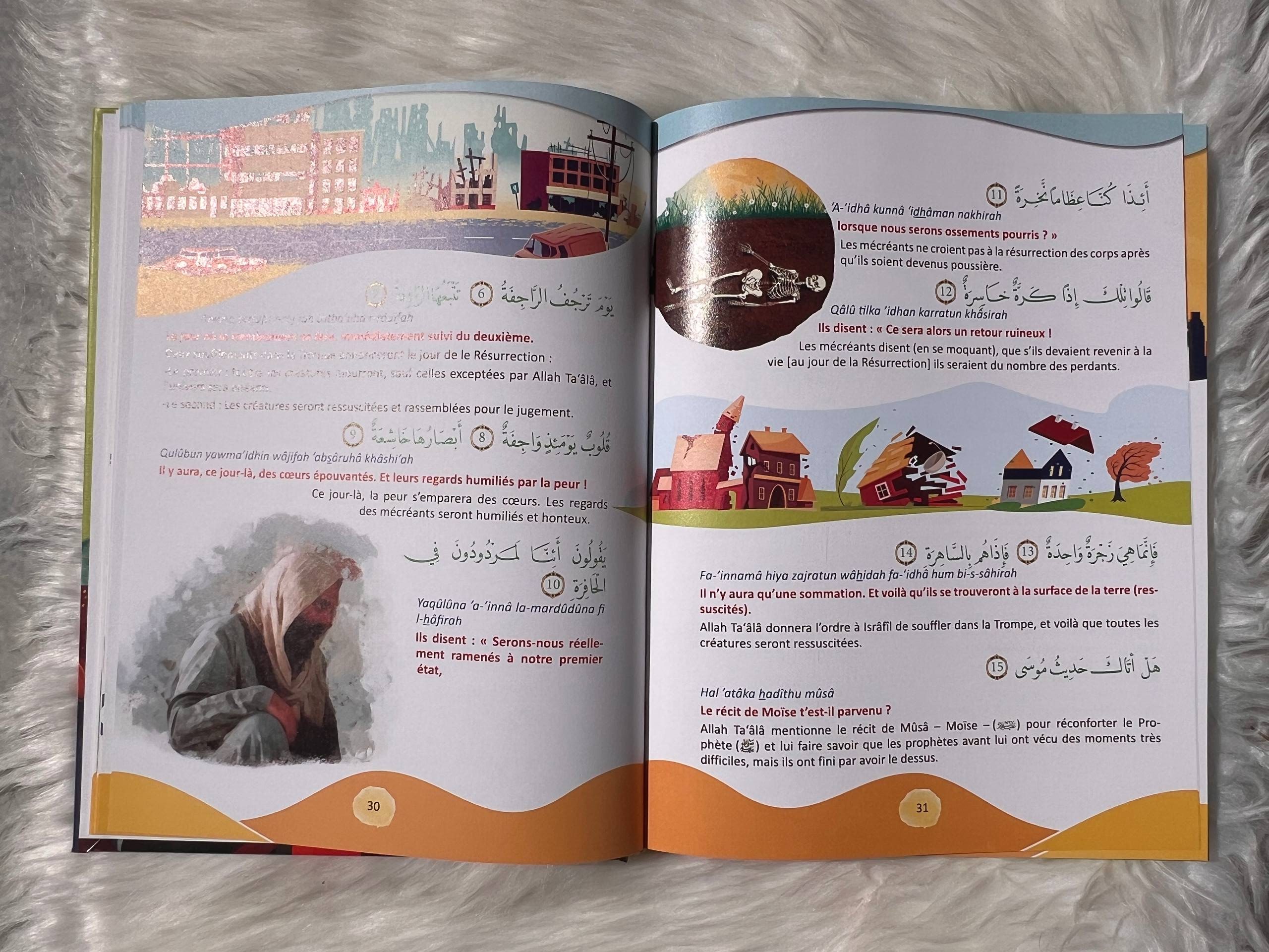 Le coran expliqué aux débutants Chapitre AMMA Tome 1 : Juz’ ‘Amma est le dernier chapitre du Coran. Il compte 37 sourates qui sont pour la plupart courtes. L’objet essentiel de ce chapitre c’est la foi. Dieu y rappelle les piliers de la foi : Croire en Dieu, en Ses anges, en Ses Livres, en Ses Messagers, au Jour de la Résurrection, et au destin. Dieu évoque aussi Sa puissance, les merveilles de Sa création, notamment la création de l’homme. Il décrit également l’aspect éphémère de ce monde, la nécessité de croire en Lui et de suivre le chemin de l’Islam pour jouir de la paix dans cette vie et d’accéder au Paradis dans l’au-delà pour y vivre éternellement.