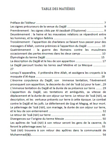 Le faux Messie et le retour de ‘Issa : ce livre est une compilation des récits prophétiques et des paroles des savants de l’Islam concernant le faux messie. Le Prophète (SAW) a dit :