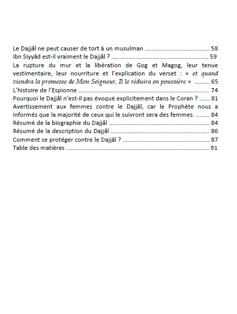 Ce livre aborde également un certain nombre de prophéties précédentes l’avènement de l’Heure. Il décrit l’époque, les lieux où se déroulent ces évènements et surtout, de quelle façon le croyant pourra s’en prémunir.