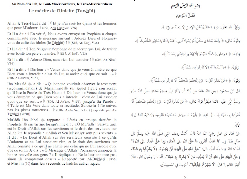 Le livre du Tawhid (L’unicité d’Allah) – (Bilingue FR-AR)