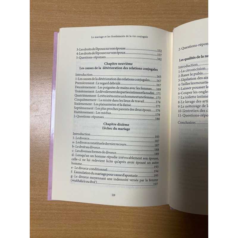 Le mariage et les fondements de la vie conjugale : Le mariage est un signe et un bienfait de Dieu le Très-Haut. Il est aussi le moyen idéal d’accroître et perpétuer l’espèce humaine. Le Coran et la Tradition prophétique ont exposé avec force détails les règles inhérentes au mariage et aux relations au sein du couple, permettant ainsi aux gens de réaliser le but véritable du mariage.