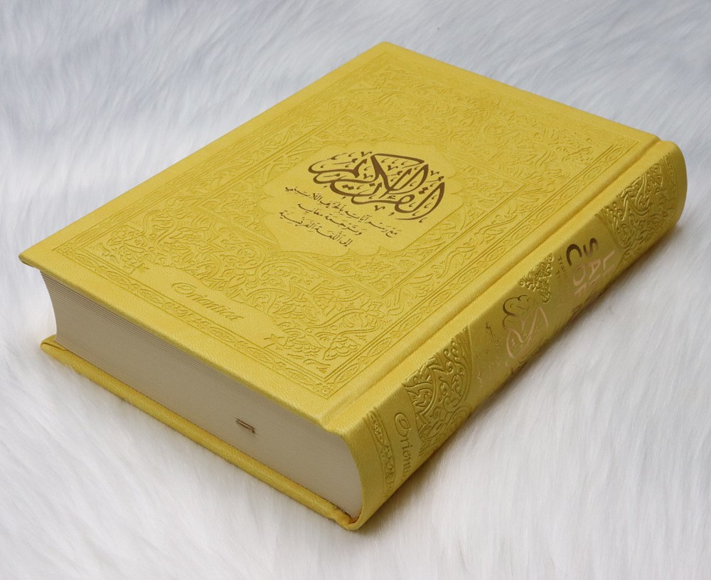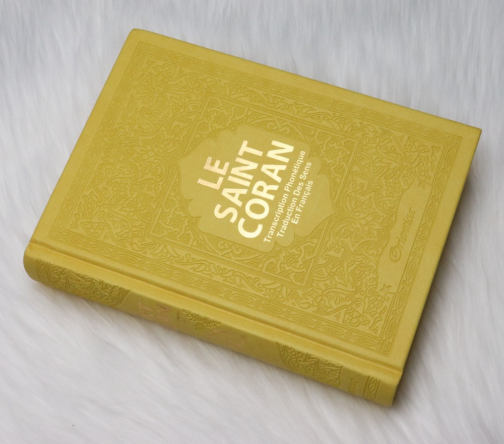 Le Saint Coran en Français – Arabe – Phonétique | Edition de luxe – Couverture en cuir couleur jaune doré