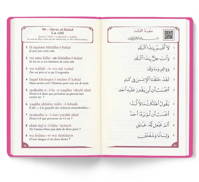 Le Saint Coran Juzz Amma – Français Arabe et Phonétique avec codes QR – Couleur Rose