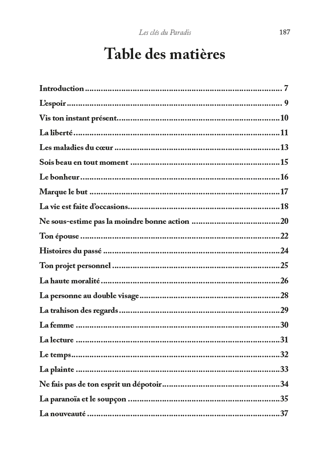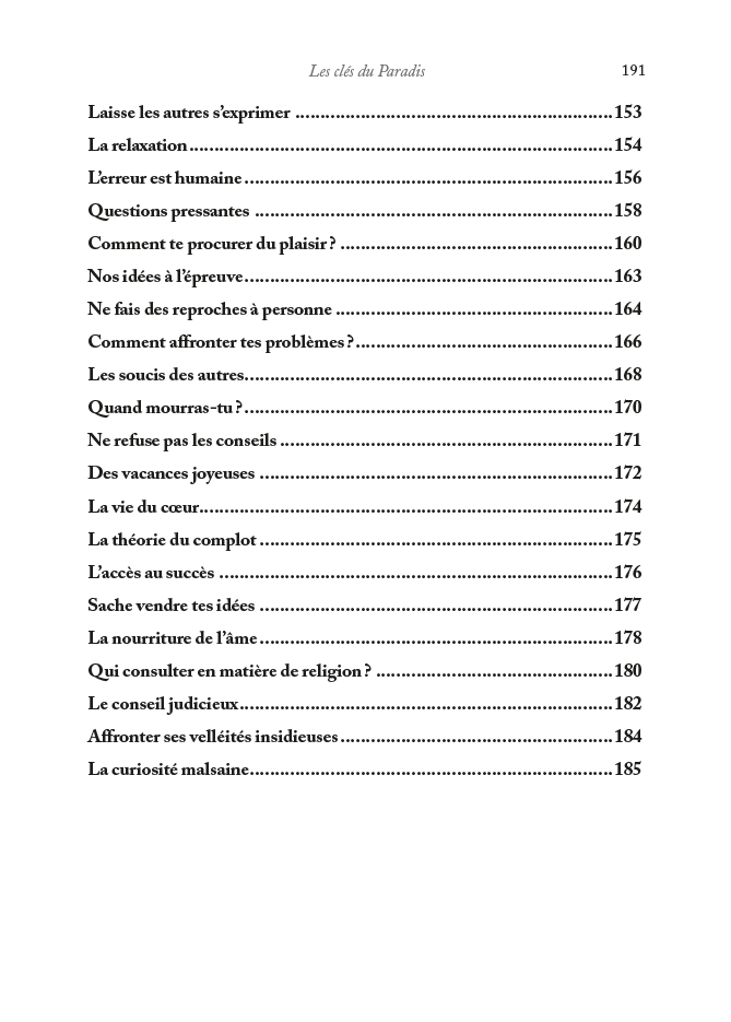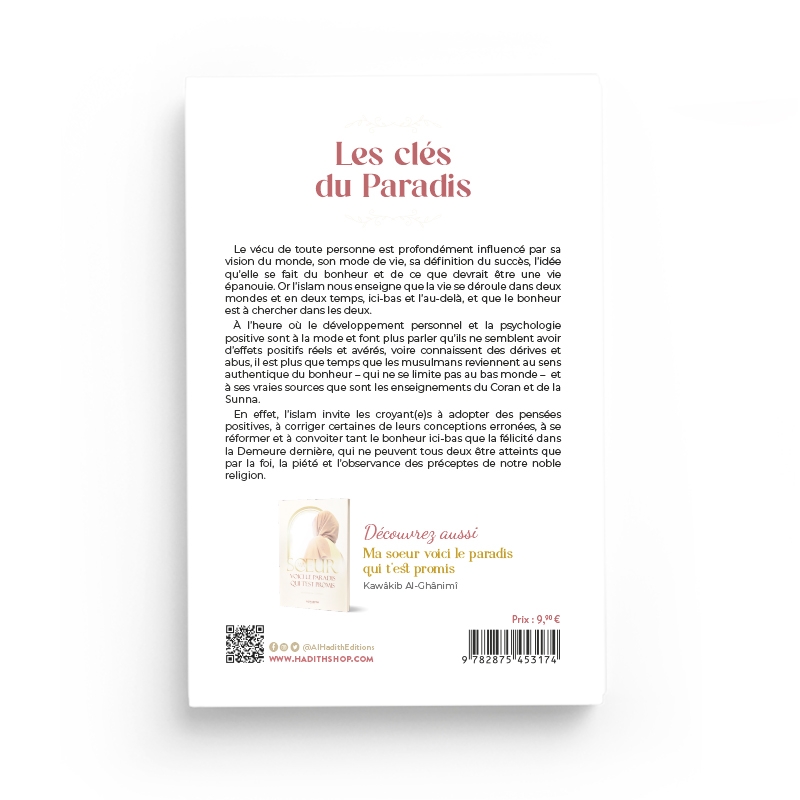 Les clés du Paradis – Editions Al hadith : Le vécu de toute personne est profondément influencé par sa vision du monde, son mode de vie, sa définition du succès, l’idée qu’elle se fait du bonheur et de ce que devrait être une vie épanouie. Or l’islam nous enseigne que la vie se déroule dans deux mondes et en deux temps, ici-bas et l’au-delà, et que le bonheur est à chercher dans les deux.
