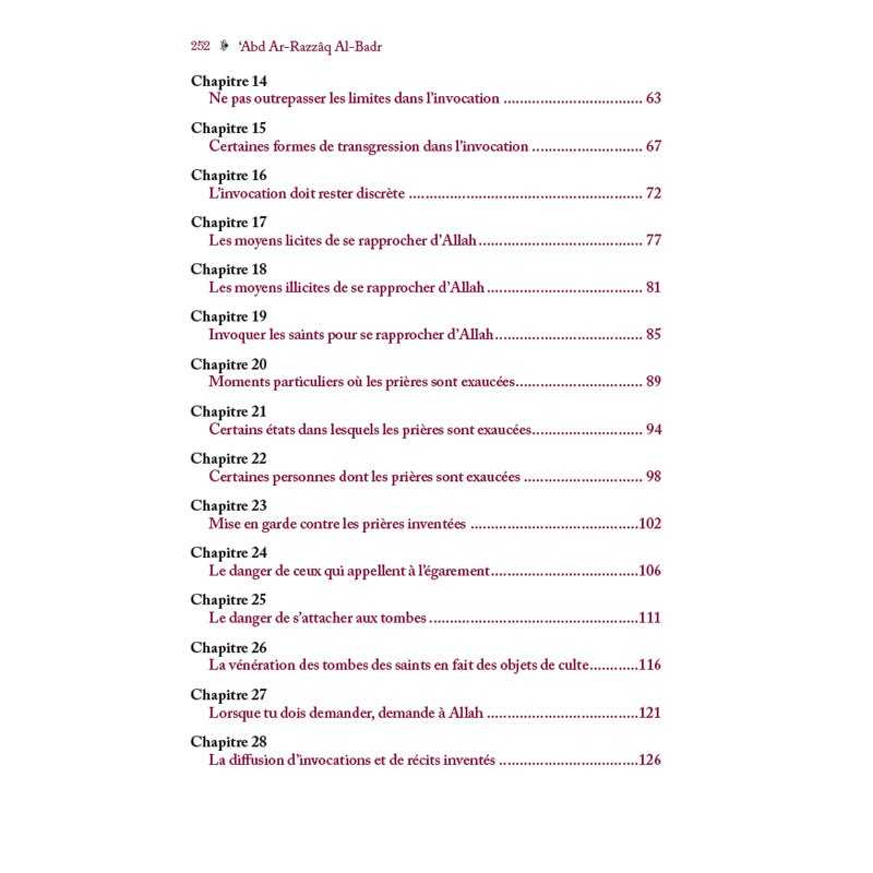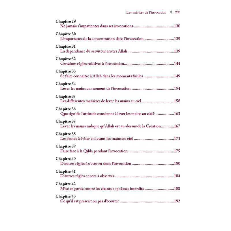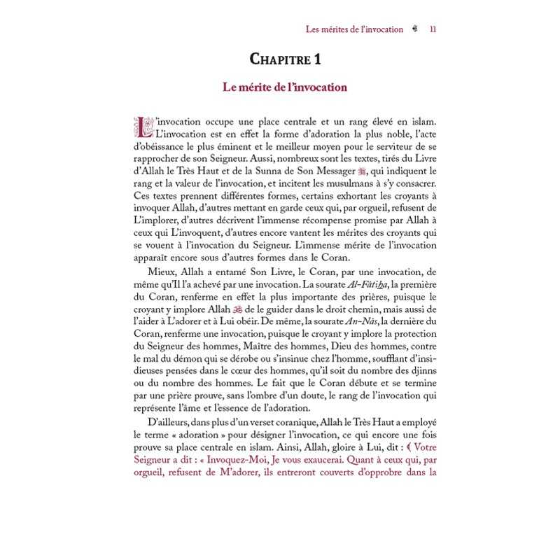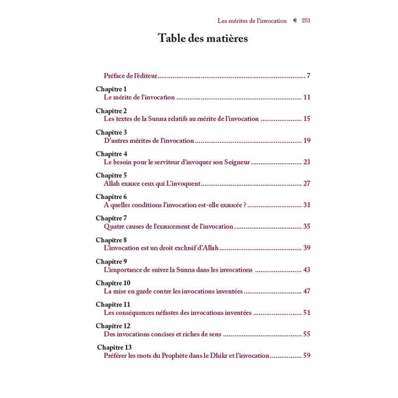 Les mérites de l’invocation : deuxième volume d’une série de quatre titres dont chacun peut être lu indépendamment et qui constituent les quatre parties du célèbre livre « Fiqh al-ad‘iya wal-adhkâr » du cheikh ‘Abd Ar-Razzâq al-Badr, « Les mérites de l’invocation »