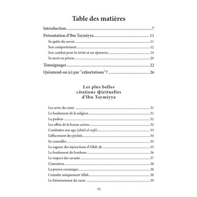 Les plus belles citations spirituelles de Ibn Taymiyya : Dans ce volet de la collection « LES EXHORTATIONS », découvrez « Les plus belles citations spirituelles d’Ibn Taymiyya » extraites de ses ouvrages, principalement de la somme de ses fatwas : Majmû‘ al-fatâwâ.