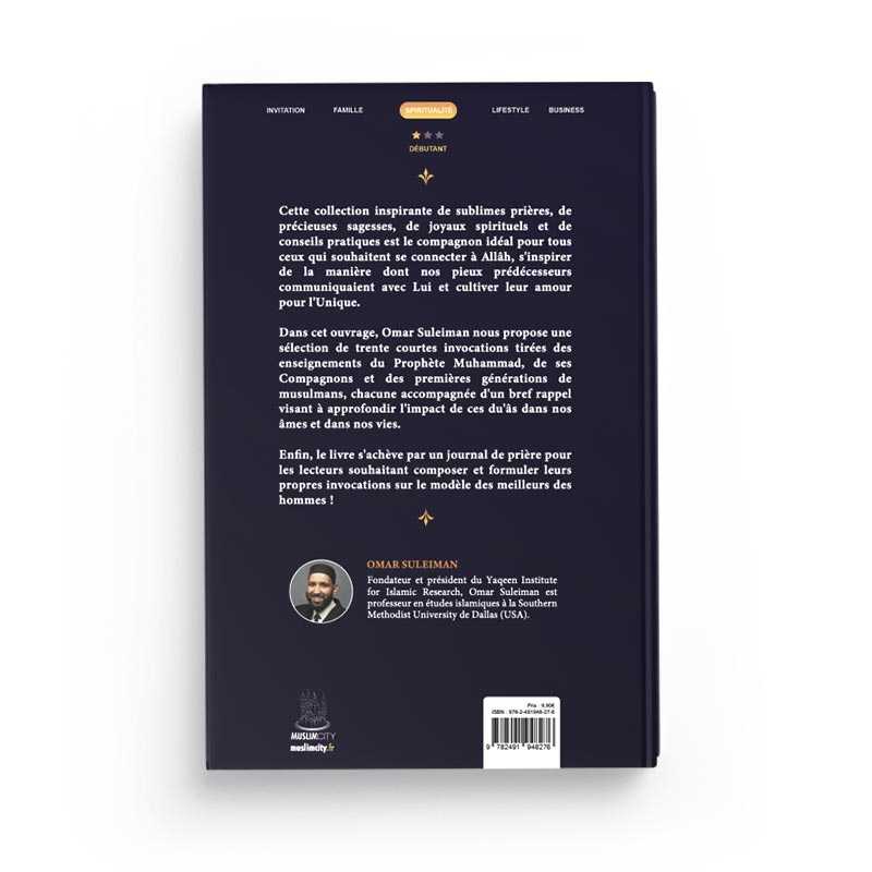 Dans cet ouvrage, Omar Suleiman nous propose une sélection de trente courtes invocations tirées des enseignements du Prophète Muhammad, de ses Compagnons et des premières générations de musulmans, chacune accompagnée d’un bref rappel visant à approfondir l’impact de ces du’âs dans nos âmes et dans nos vies.
