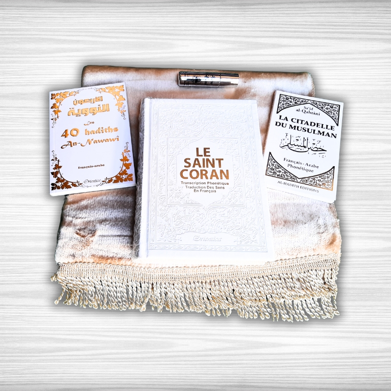 - Le Saint Coran en Français – Arabe et Phonétique de couleur blanche dorée