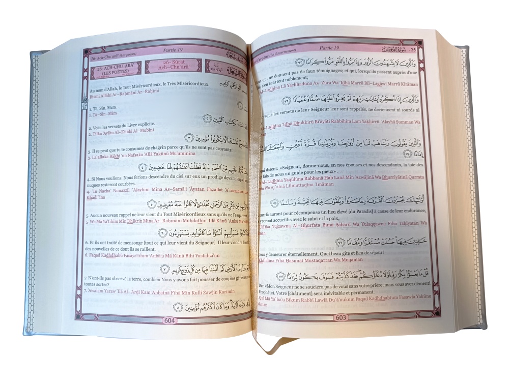- Le Saint Coran en Français – Arabe et Phonétique de couleur grise dorée