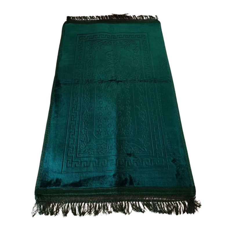- Tapis de prière adulte ultra-doux – Couleur verte avec motifs