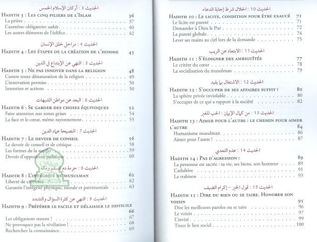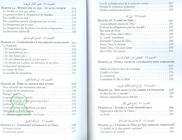 Quarante Hadiths Nawawi & ses Commentaires : l’imam Nawawi, à travers le recueil des Quarante hadiths, a voulu donner une image globale des enseignements de notre Prophète sur l’Islam et ses composantes essentielles (foi, éthique et grands principes juridiques). Il a fait un choix grandement judicieux de ces quarante-deux hadiths parmi des dizaines de milliers d’autres.