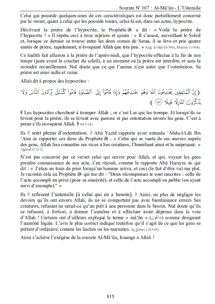 • Volume 3 (864 pages) : De sourate N° 33 : Al-Ahzâb – (Les Coalisés) à sourate N° 114 : An-Nâs (Les Hommes).