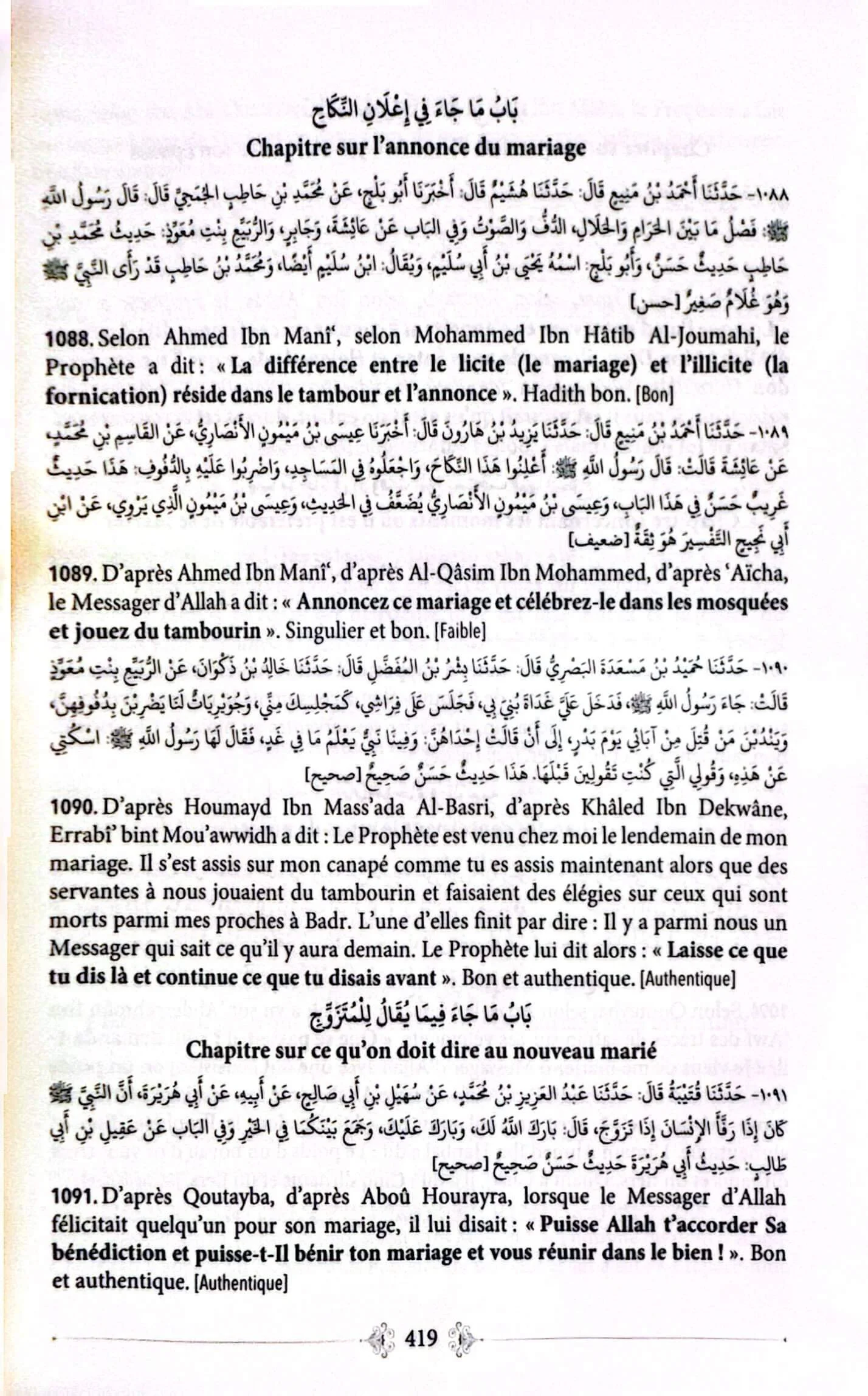 | Auteur : Al-Hakîm Al-Tirmidhî – Authentification des hadiths par : Cheikh Al-Albani |