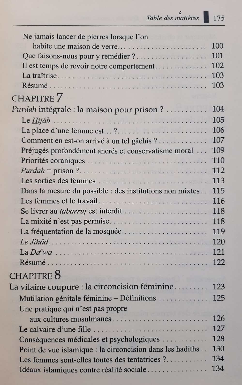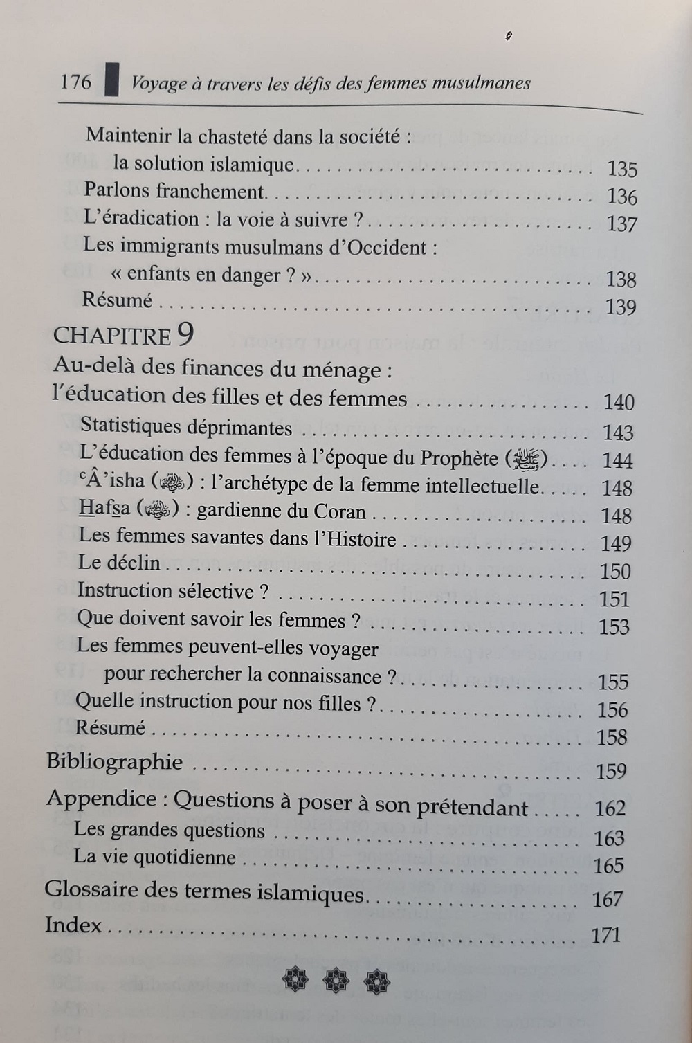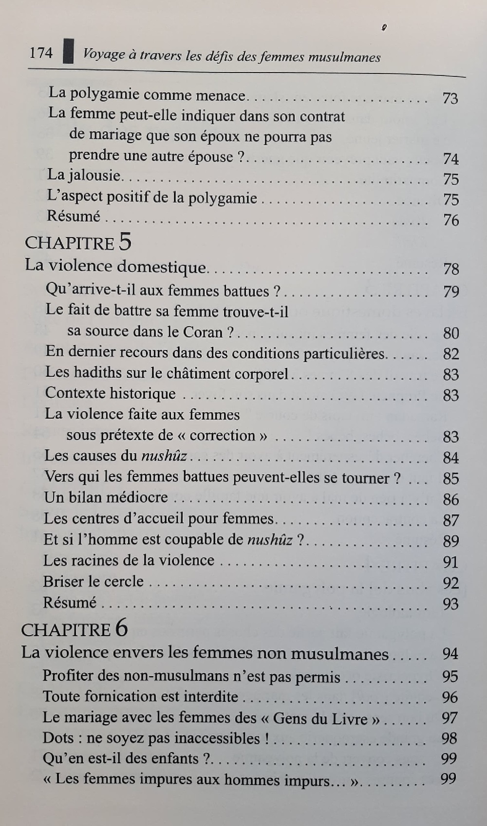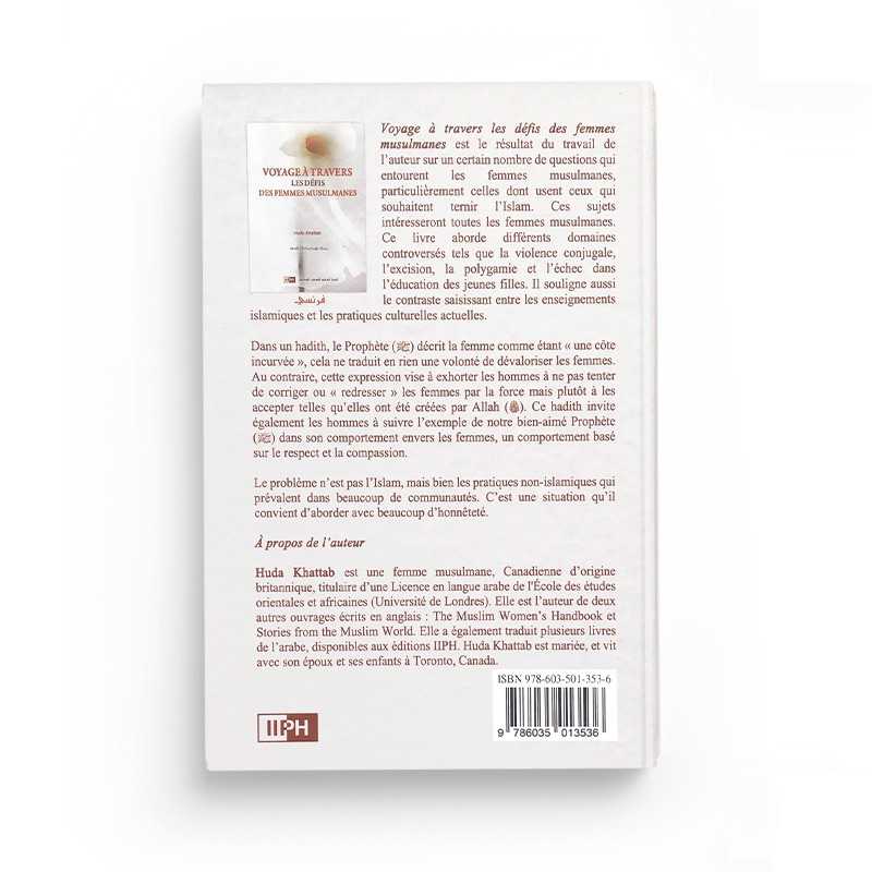 Voyage à travers les défis des femmes musulmanes : Voyage à travers les défis des femmes musulmanes est le résultat de l’auteur sur un certain nombre de questions qui entourent les femmes musulmanes, particulièrement celles dont usent ceux qui souhaitent tenir l’Islam. Ces sujets intéresseront toutes les femmes musulmanes. Ce livre aborde différents domaines controversés tels que la violence conjugale, l’excision, la polygamie et l’échec dans l’éducation des jeunes filles. Il souligne aussi le contraste saisissant entre les enseignements islamiques et les pratiques culturelles actuelles.